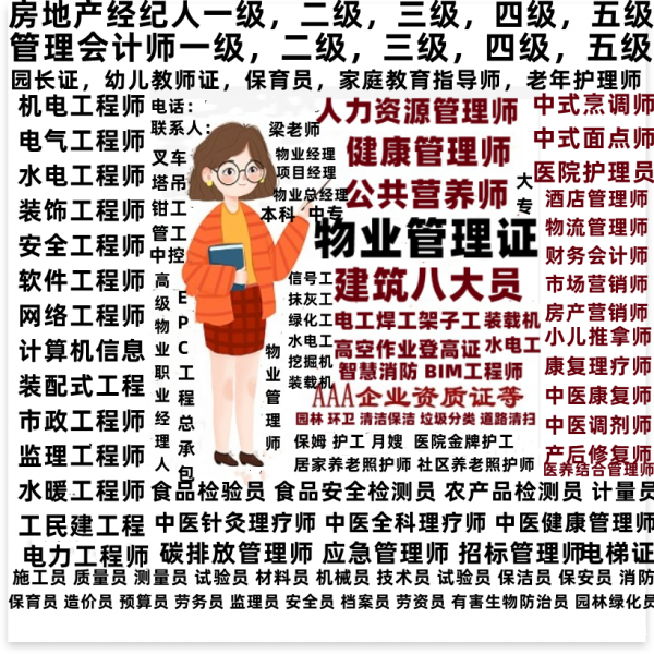 建筑类常报八大员施工员,安全员,资料员,材料员,监理员,测量员,质量员,预算员,合同员,机械员,还有监理工程师合格证,电工,焊工,起重机,信号工,架子工,钢筋工,抹灰工,砌筑工等岗位专业报名